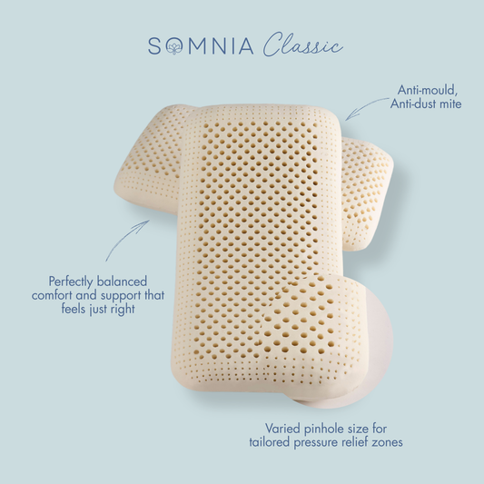 At SOMNIA, we believe that good sleep is the foundation of a healthier, happier life. Our organic latex pillows and bolsters are crafted to deliver the perfect balance of comfort and support, helping you achieve deeper, more restful sleep in Singapore’s humid climate.